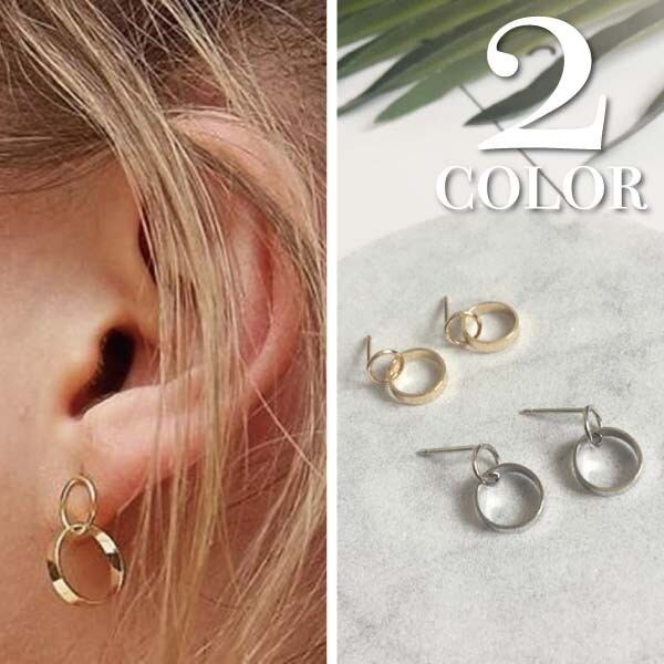 シンプル ダブルリング ピアス メタルリング 小さめ 小ぶり スイング リング カジュアル 日常使い 仕事 780302