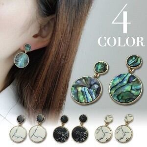 マーブルストーンのついたメタル ピアス モダンテイスト メタルピアス 石 ストーン メタル ゴールド マーブル シェル 貝殻 貝 サークル 送料無料 761002