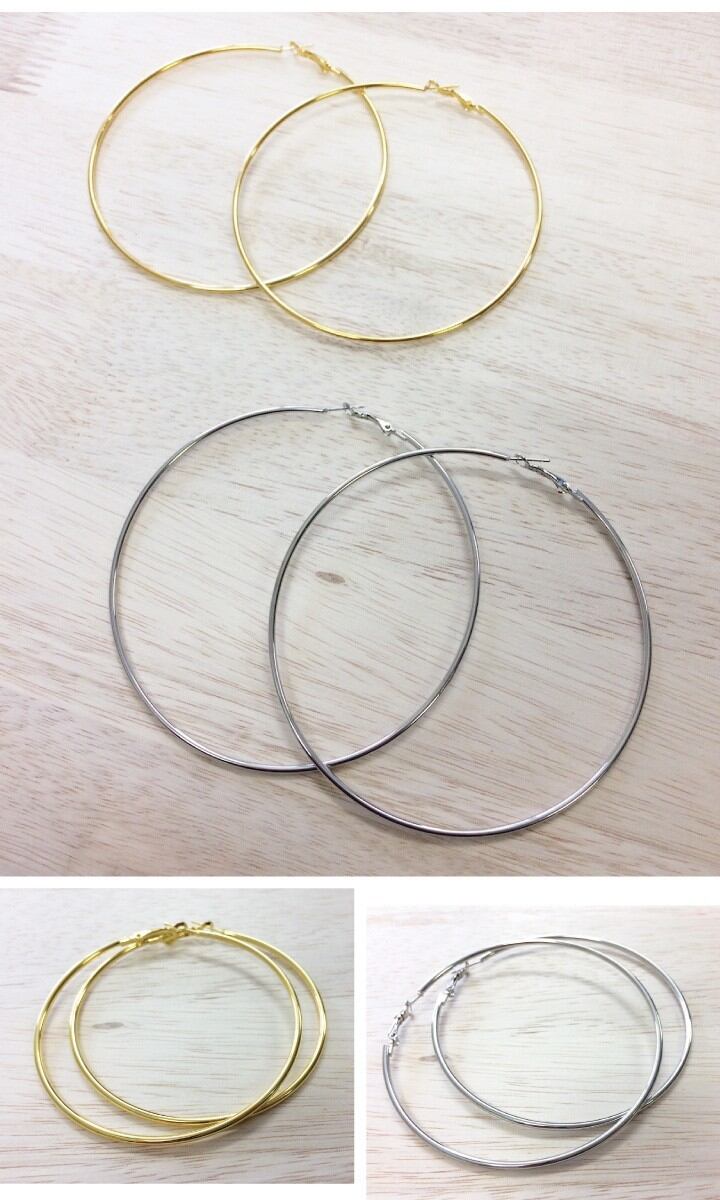 (2色×2size)インパクト大 ビッグサイズ フープピアス