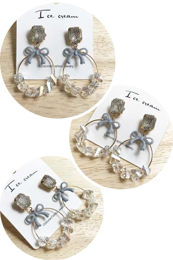 フープ ピアス レース クリスタル フープピアス しずく型 カットビーズ パーティー ベーシック エレガント 780401