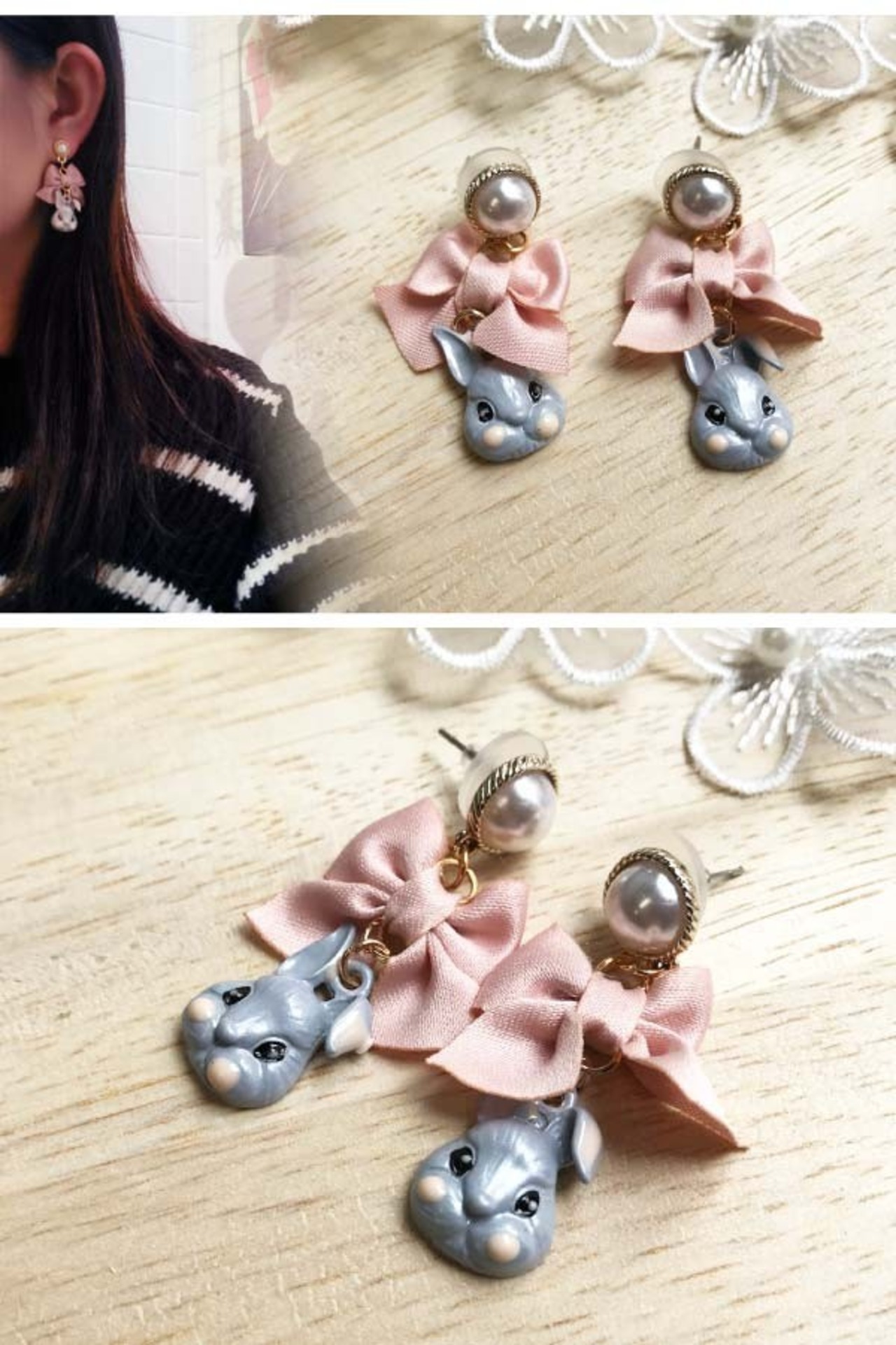 パールとリボン、うさぎモチーフが可愛らしいモチーフピアスです。