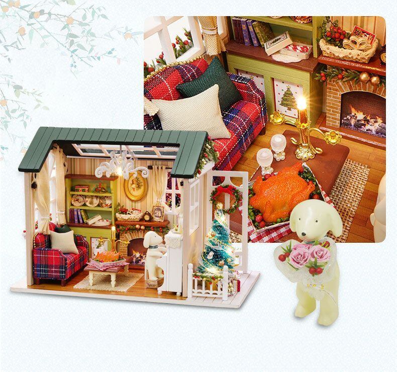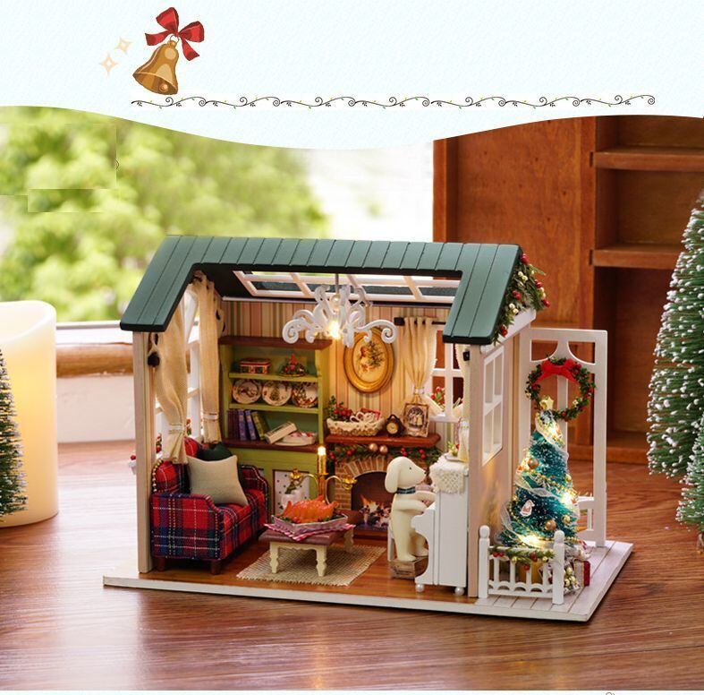木製 ドールハウス キット 森のお部屋 クリスマスナイト 犬 手作り お店 ペット ミニチュア 手作り ジオラマ DIY DIYキット 950903