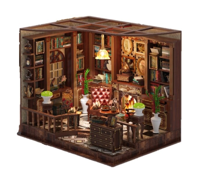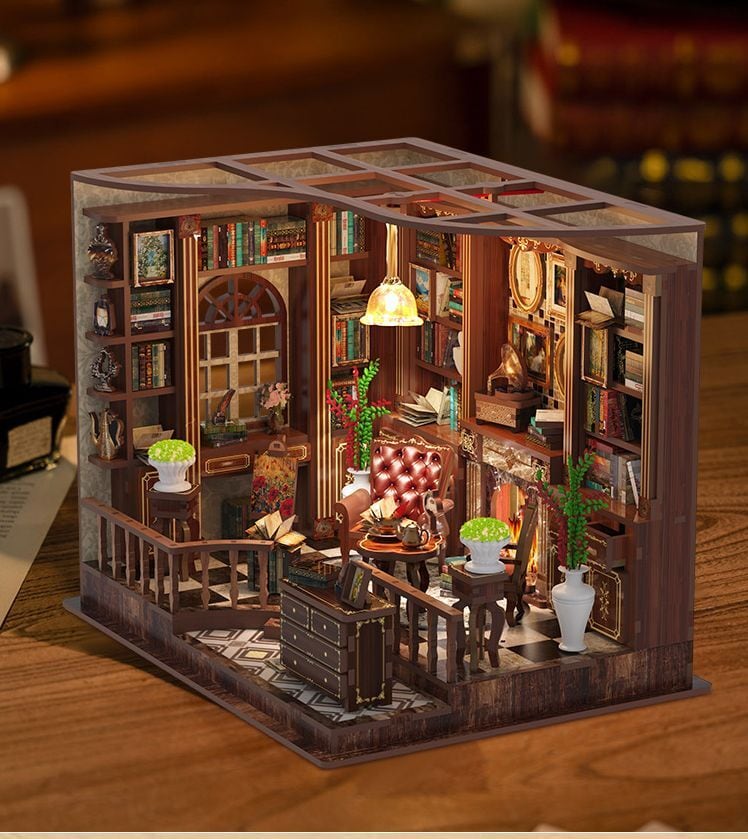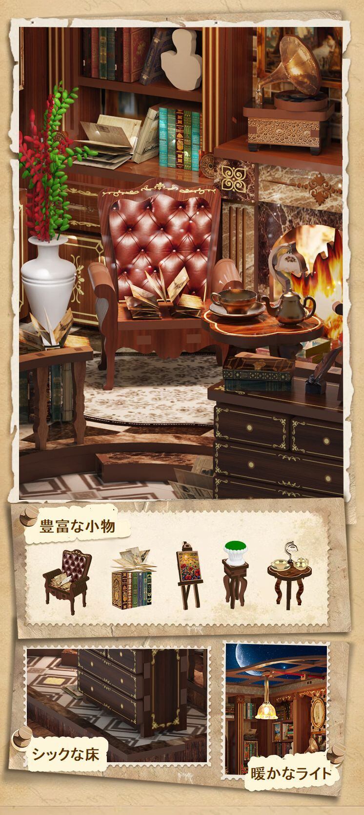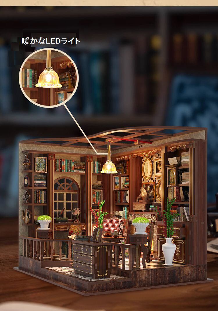 木製 ドールハウス キット レトロな書斎 クラシック 手作り 復古調 本 ミニチュア 手作り ジオラマ DIY DIYキット 950904