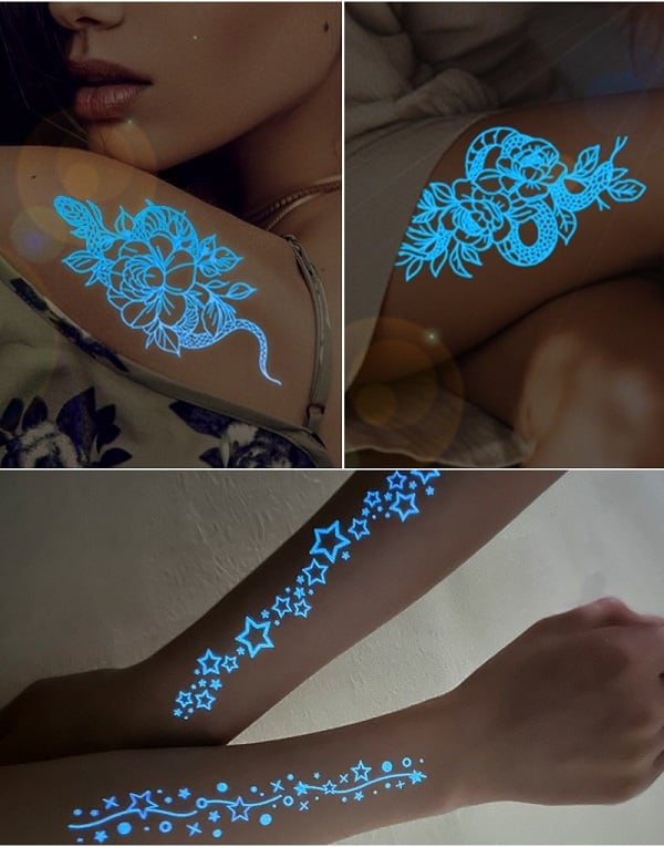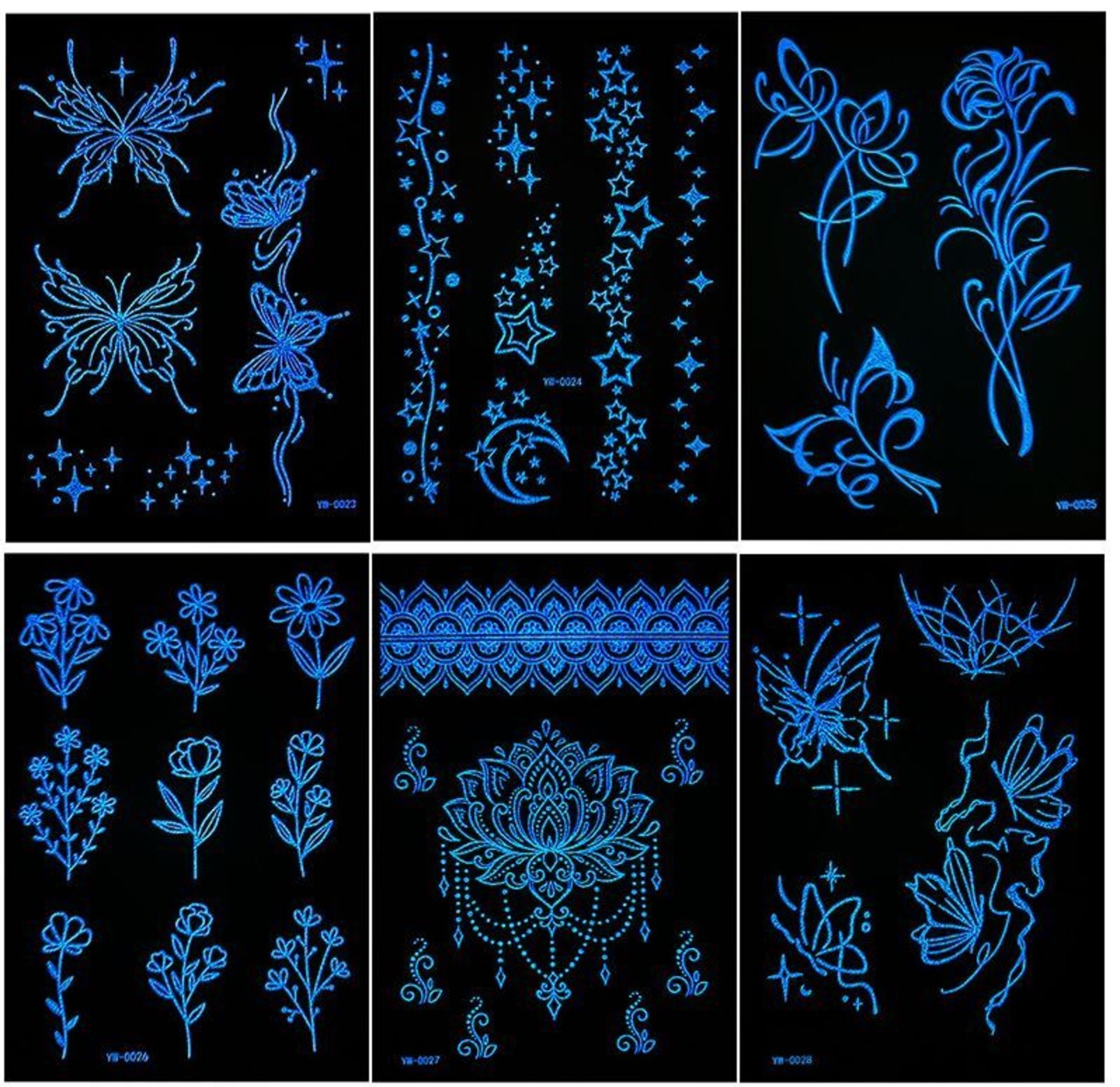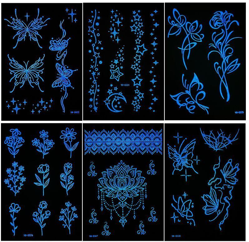 このタトゥーシールは、夜間に光るエスニック柄のデザイン