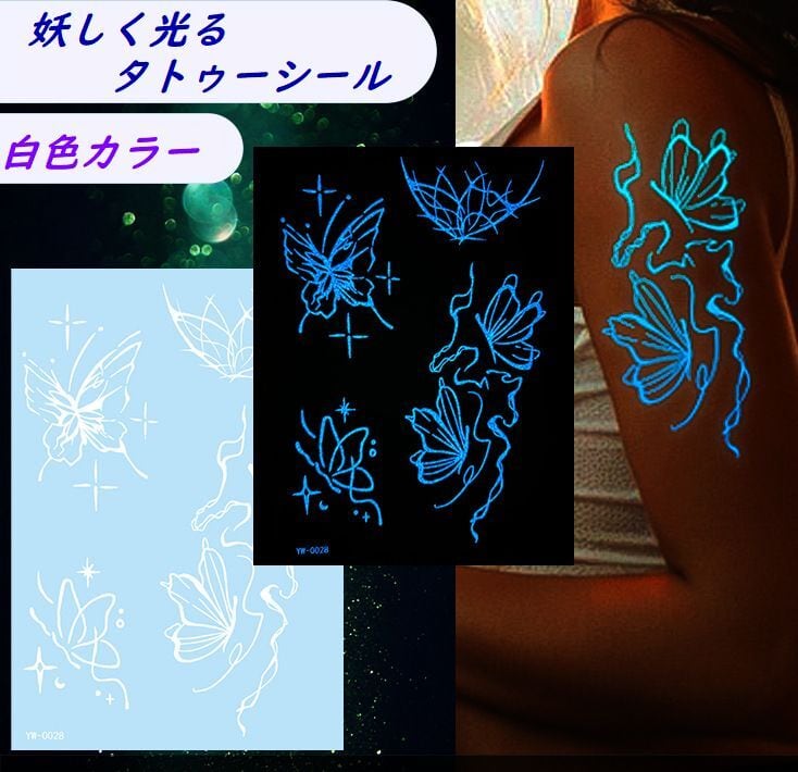 白い夜光タトゥーシール コスプレ セクシー 2枚セット