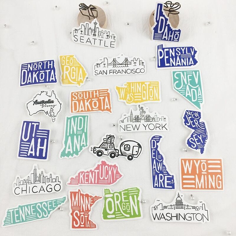 フレークシール カラフル ワールド プレイスネーム シール 防水 世界 地名 デコパージュ ヘルメット ステッカー コラージュ 960302