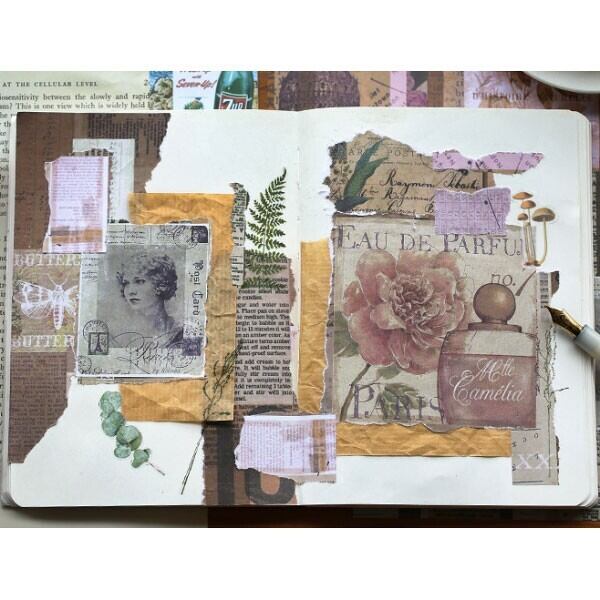 シートを丸ごと使うほか、はさみでカットしたり手で裂いて好きな絵柄でコラージュする事もできます。