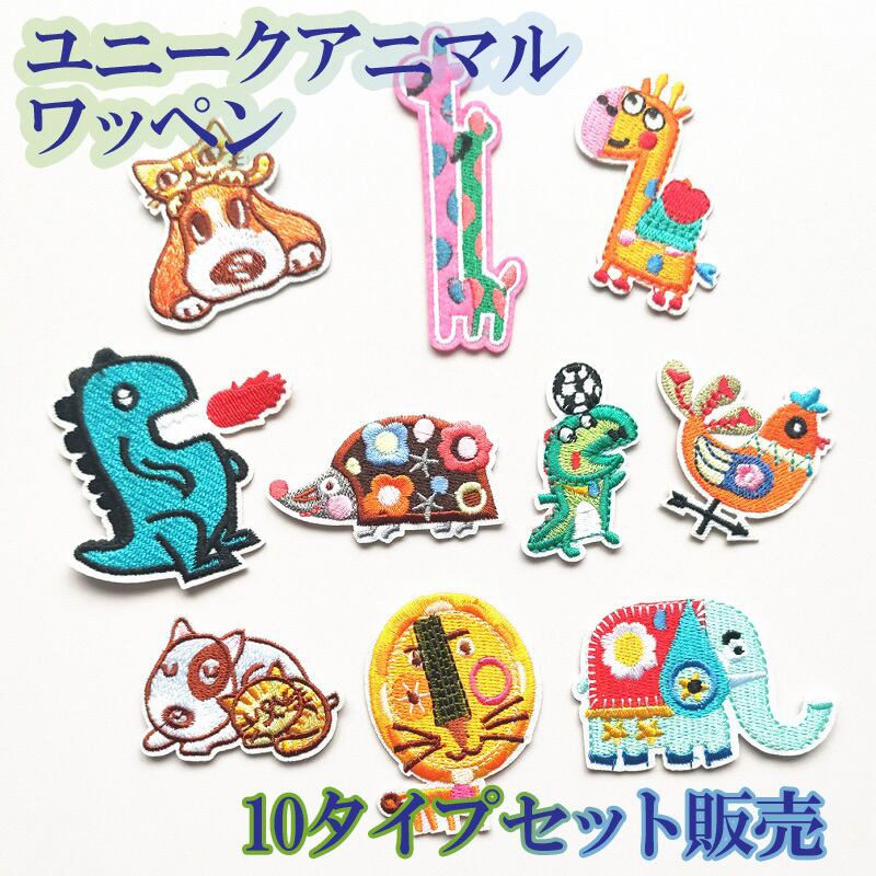 ユニーク アニマル ワッペン 10枚セット 刺繍 手芸 ハンドメイド アップリケ 手作り キッズ 子供 ホビー 趣味 キット キッズ 910316