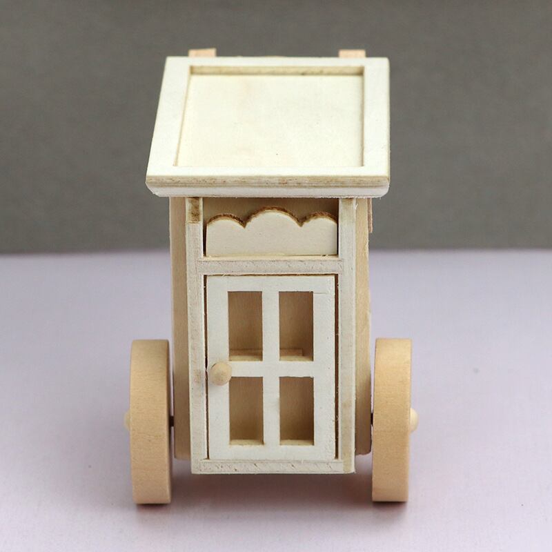 ミニチュア 雑貨 キッチンカート 台所 子供 キッチン カート 白木 木製 1/12 和風 ホビー 手芸 趣味 キット アメリカン ドールハウス インテリア おもちゃ 20005