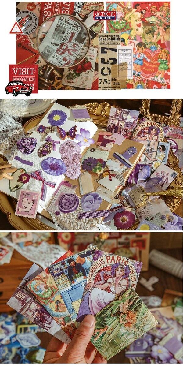 ヴィンテージ レトロ ステッカー フレークシール シール 古い ピンク 時計 少女 旅行 ステッカー メッセージ ラッピング プレゼント 920410